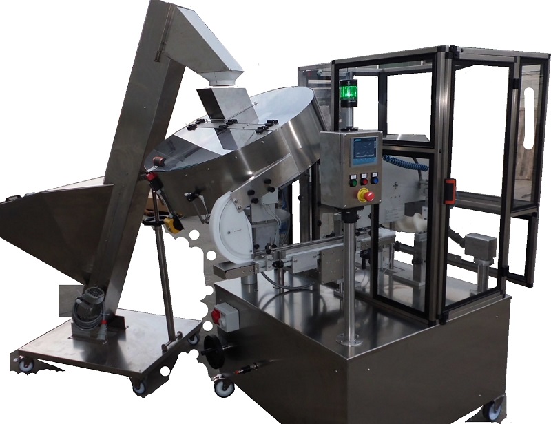 - Coclea di posizionamento flaconi in fase per l'operazione di tappatura;